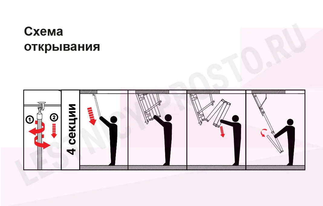 В комплекте: защитные насадки на ножки, деревянный стержень для открывания лестницы.