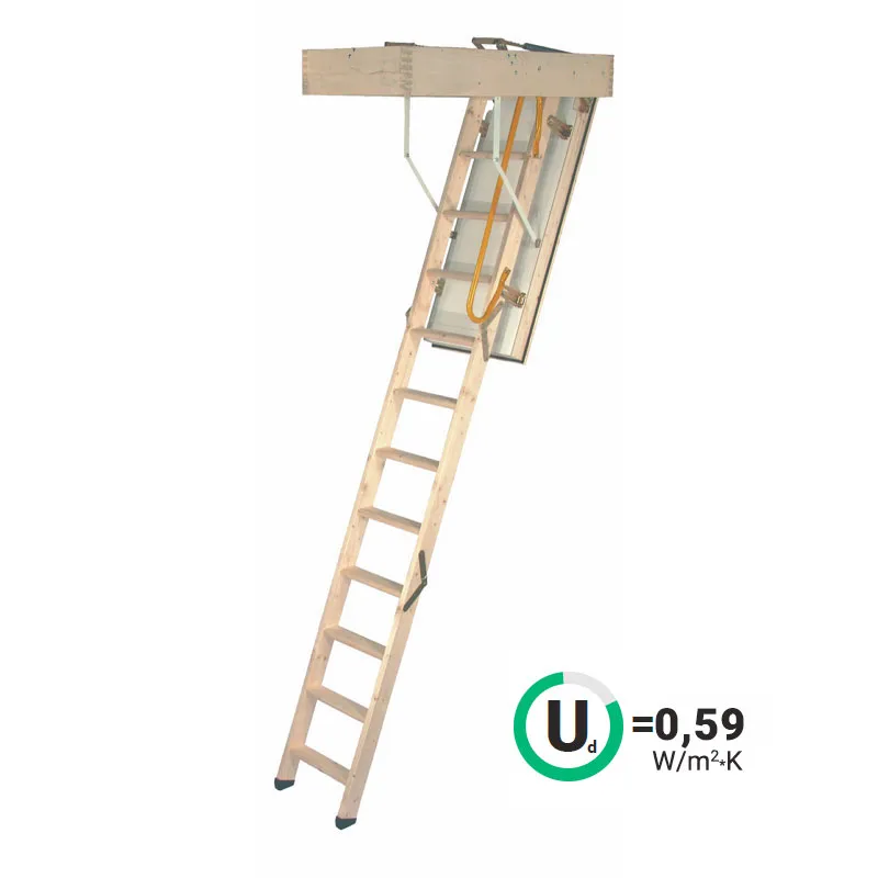Раскладная трехсекционная чердачная лестница MC STEP изготовлена из массива сосны/ели;