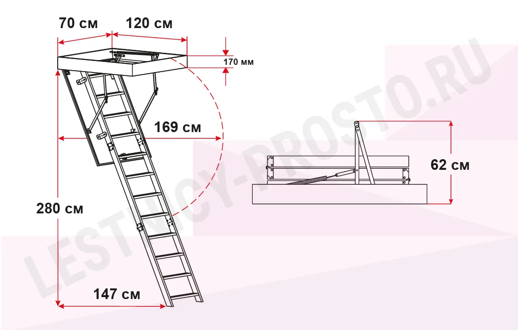 Чердачная лестница с люком OMAN POLAR 70х120 см, h-280 см