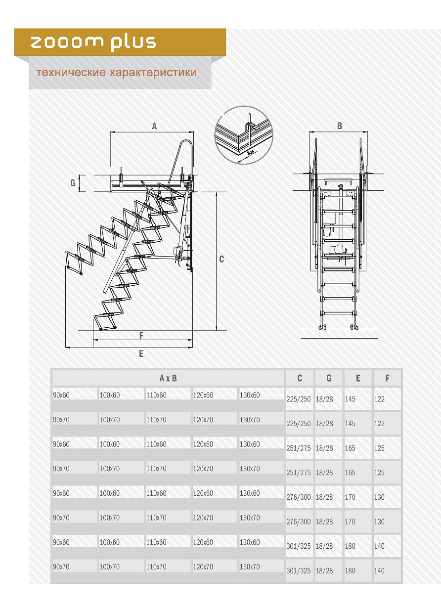 Длина ступенек: 34 сантиметра ( при ширине проема 70 см.), 24 сантиметра ( при ширине проема 60 и 50 см.).