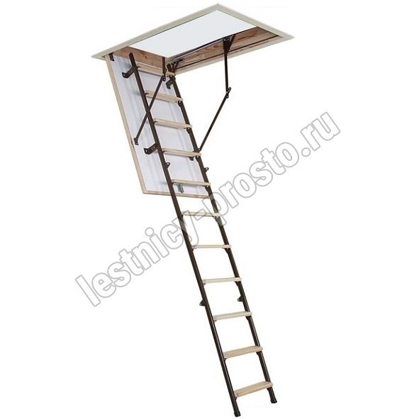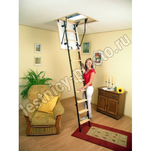 Модель STALLUX идеально подходит для условий, когда чердак утеплен и не требует дополнительной теплоизоляции. Направляющие изготовлены из стали, а ступени - из сосны. Термоизоляционная крышка типа "сэндвич", толщиной 30 мм, утеплена пенопластом, облицована с двух сторон ДВП белого цвета.