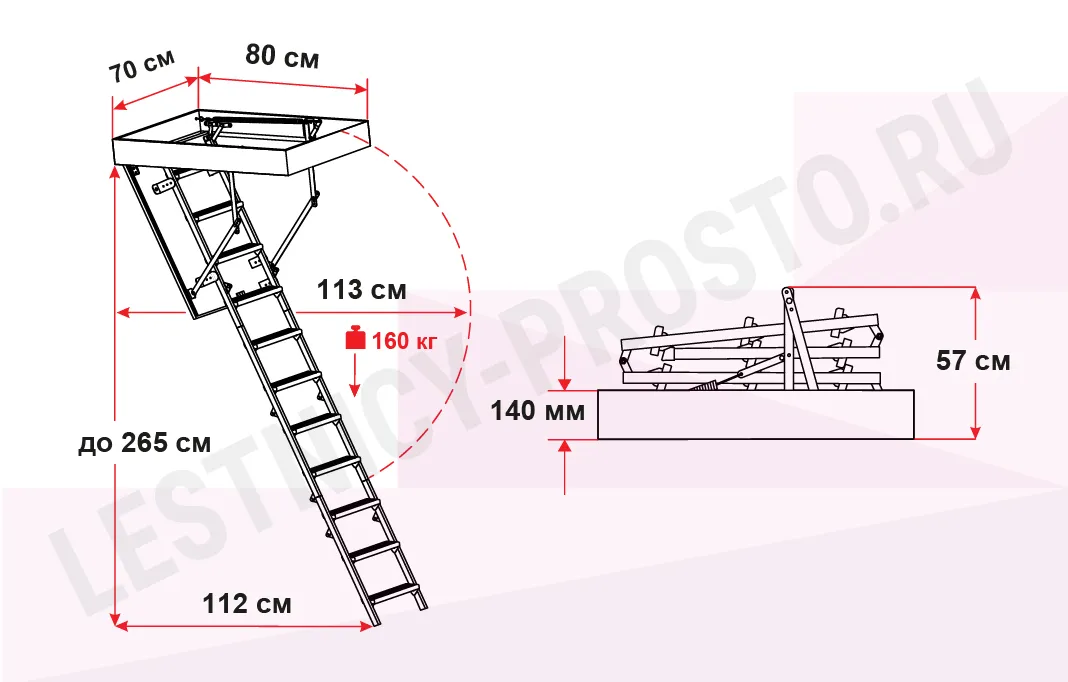 Чердачная лестница с люком OMAN STALLUX 70х80 см, h-265 см