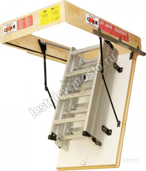 Чердачная лестница алюминиевая с люком OMAN ALU PROFI LITE 70х120 см, h-280 см