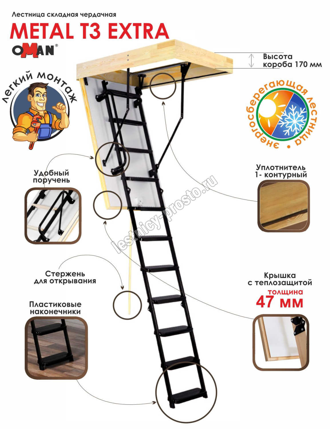 Лестница OMAN Metal T3 EXTRA 70×120 см, h-280 см