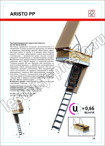 Противопожарная чердачная лестница с люком OMAN ARISTO PP 70х140 см, h-310 см