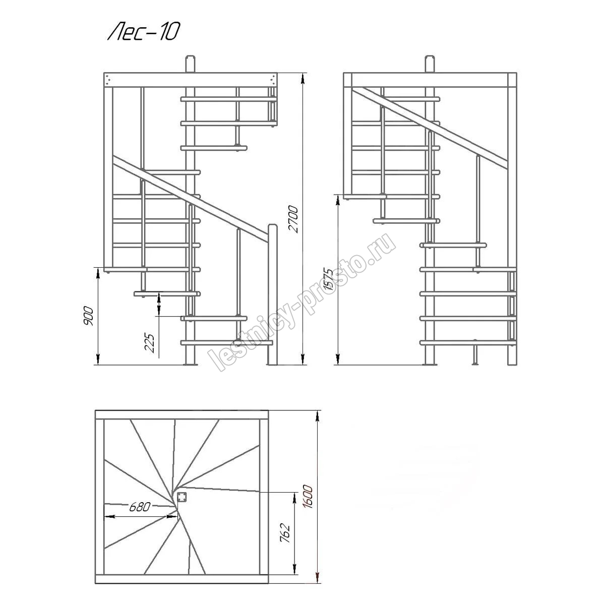 Деревянная межэтажная лестница ЛЕС-10, Бук