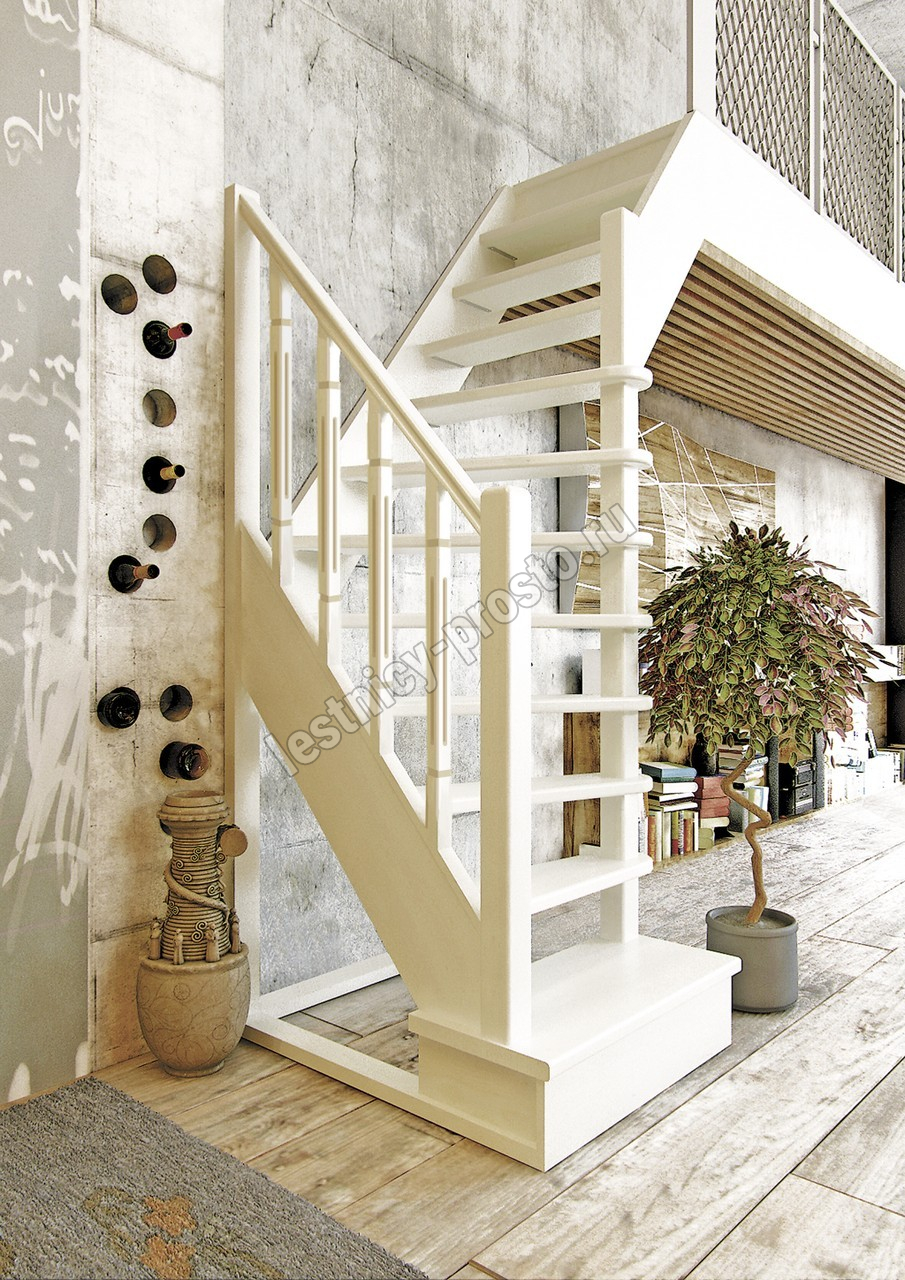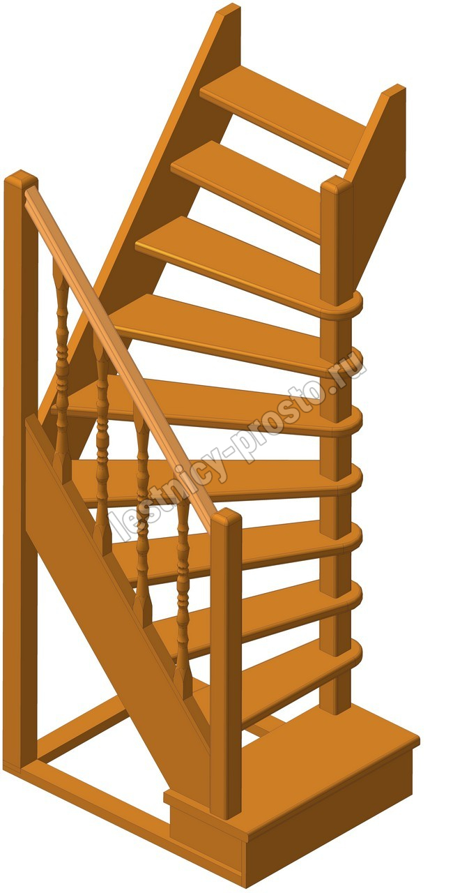 Деревянная межэтажная лестница ЛЕС-91 2250-2475 проем 1090-780, Лиственница