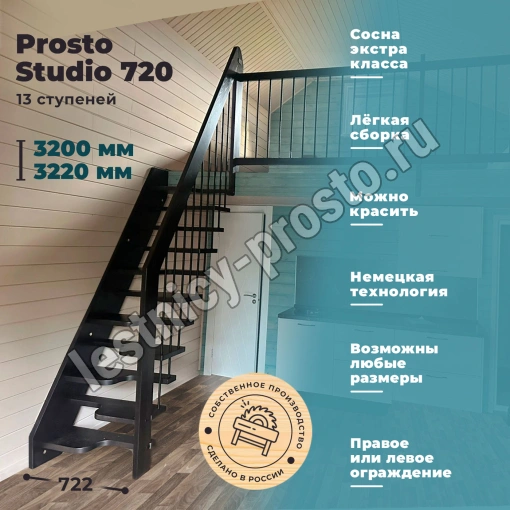 Консольная деревянная лестница Prosto Studio 720 гусиный шаг, h320-322 см (13 ступеней) из сосны