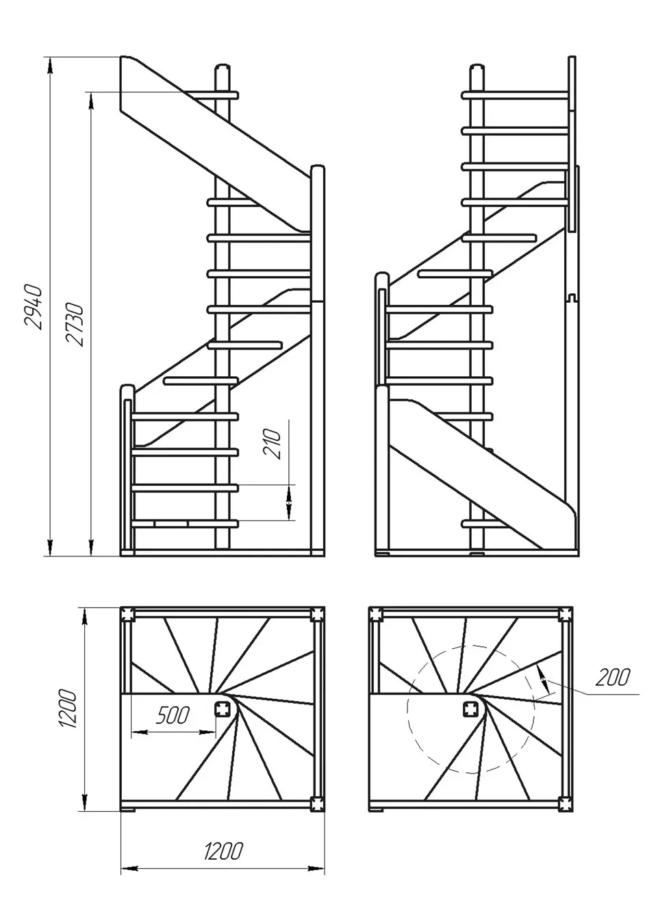 Габариты в плане 1200 × 1200 × 2940 мм
