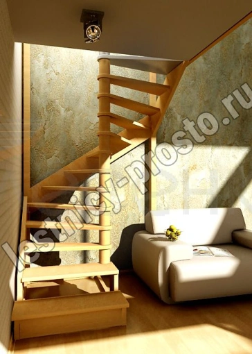 Деревянная межэтажная лестница ЛЕС-01 2340-2540 проем 1630-900, Лиственница