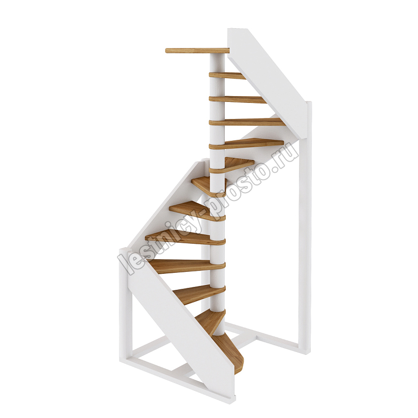 Небольшая аккуратная лестница, хорошо подойдет для помещения с небольшим проемом, поможет сэкономить пространство и организовать комфортный подъем на  уровень выше. Возможны варианты лестницы из сосны под покраску, сосны, дуба, бука или ясеня. Для увеличения срока эксплуатации мы рекомендуем покрыть элементы лестницы защитным средством. Вы можете сделать это самостоятельно или заказать предварительное покрытие необходимым средством (или тонирование) в нашем цеху.