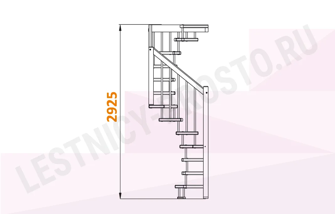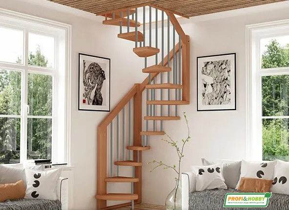 Стильная сверхмалогабаритная лесенка выручит в таких помещениях, где установка других лестниц проблематична из-за нехватки пространства. Базовый комплект включает в себя деревянные элементы лестницы и ограждения без какого-либо покрытия.