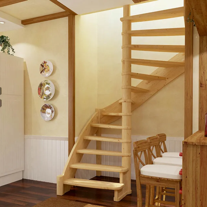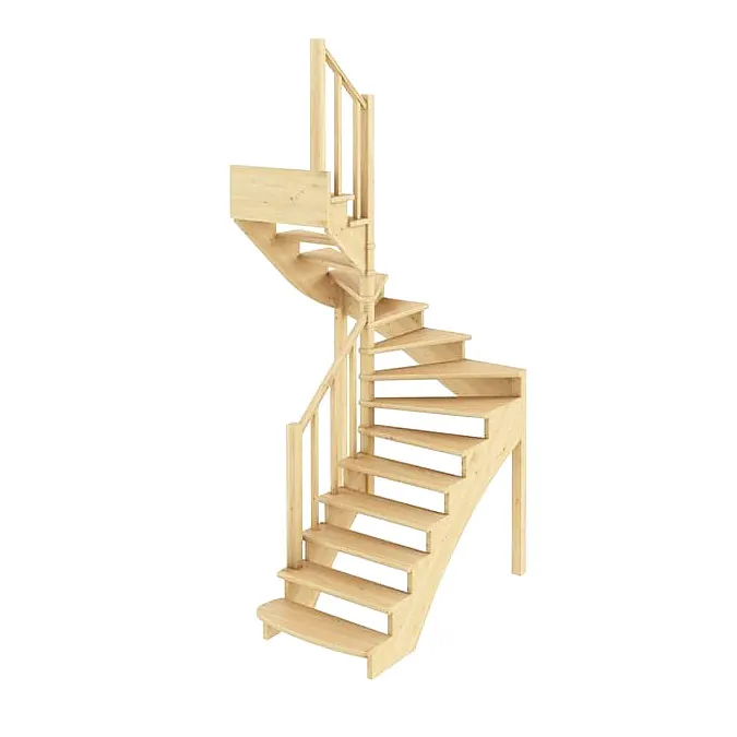 Базовый комплект включает в себя деревянные элементы лестницы и ограждения без какого-либо покрытия.