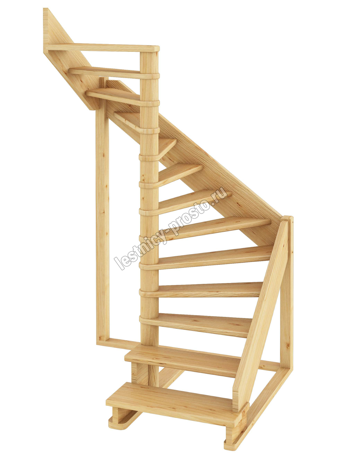 Базовый комплект включает в себя деревянные элементы лестницы без какого-либо покрытия.