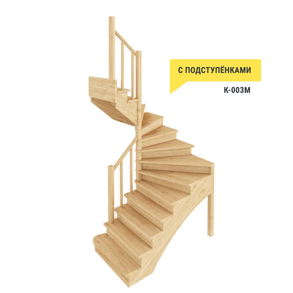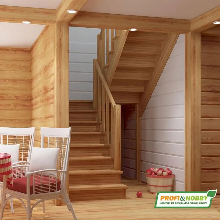Базовый комплект включает в себя деревянные элементы лестницы с подступёнками и ограждение без какого-либо покрытия.