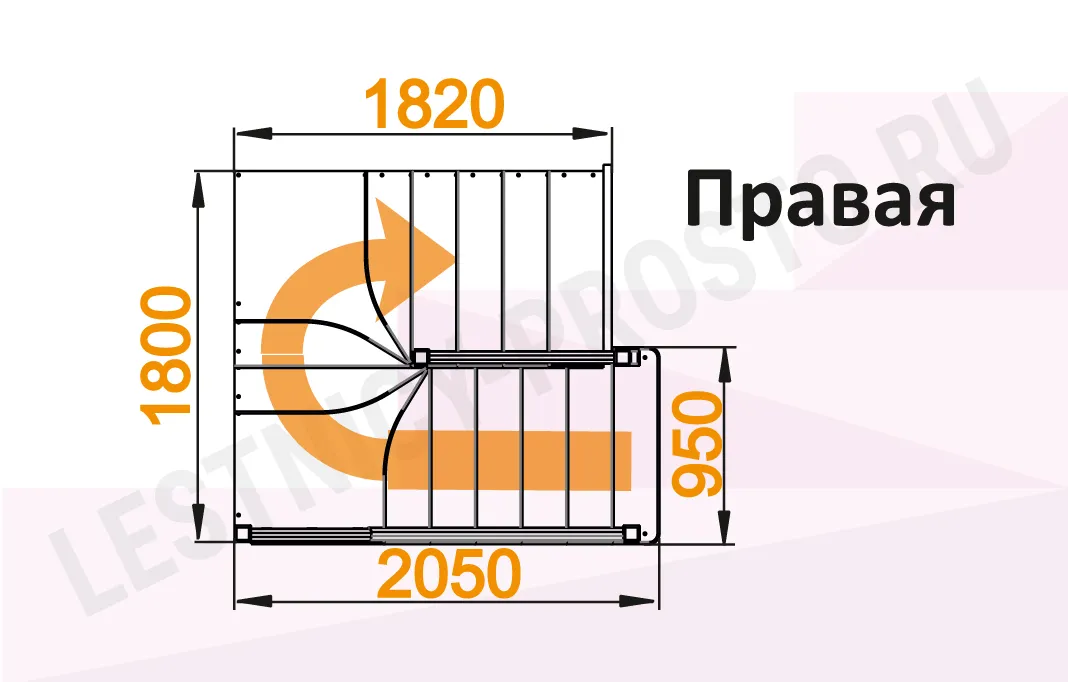 Лестница К-034М с поворотом направо