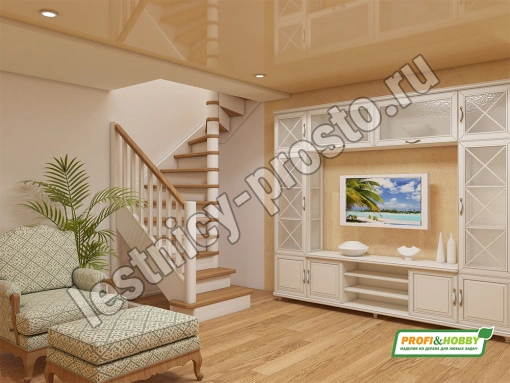 Базовый комплект включает в себя деревянные элементы лестницы и ограждения без какого-либо покрытия.
