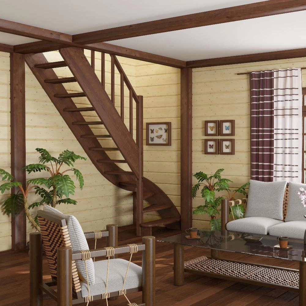 Базовый комплект включает в себя деревянные элементы лестницы и ограждения без какого-либо покрытия.