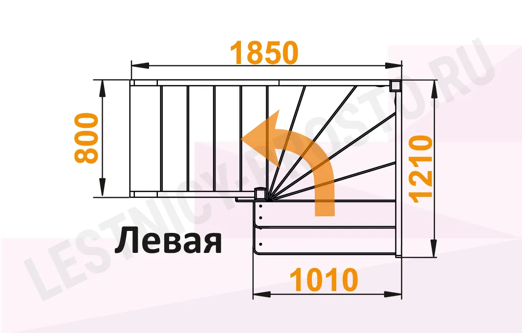 Схема лестницы ЛС-92М/2 с поворотом налево