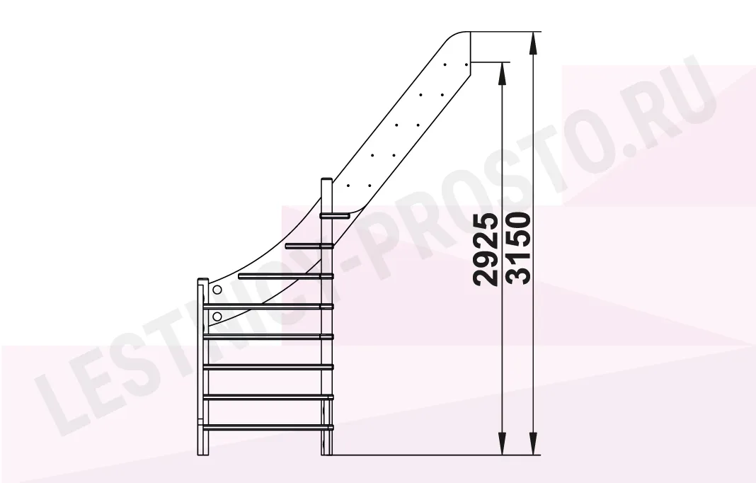 Схема лестницы ЛС-92М/5 с поворотом налево