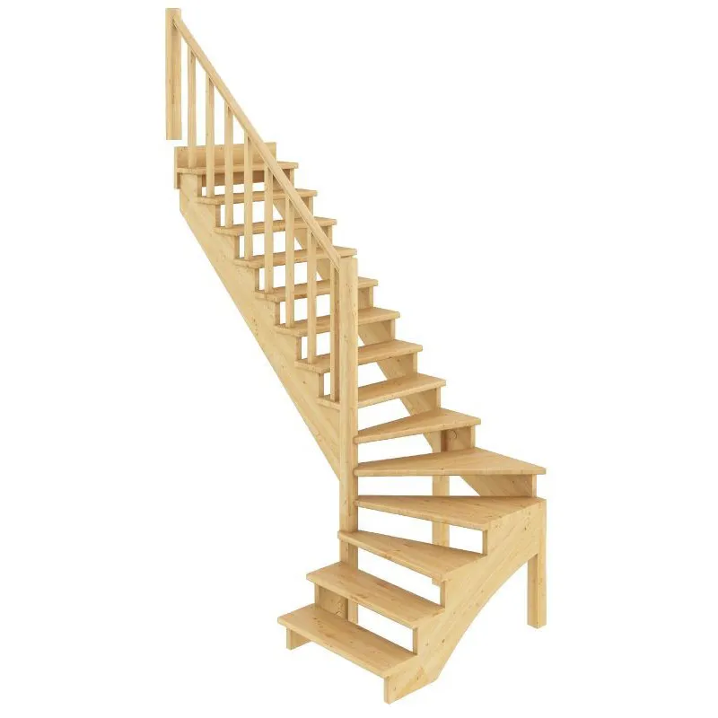 Базовый комплект включает в себя деревянные элементы лестницы и ограждения без какого-либо покрытия.