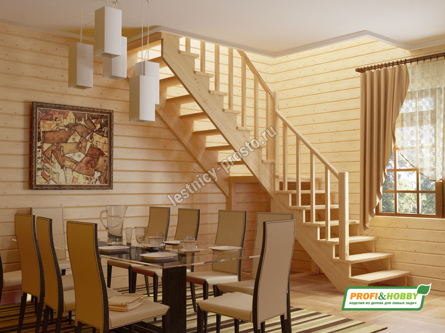 Ступени и поручень лестницы изготовлены из ясеня, остальные элементы из сосны.