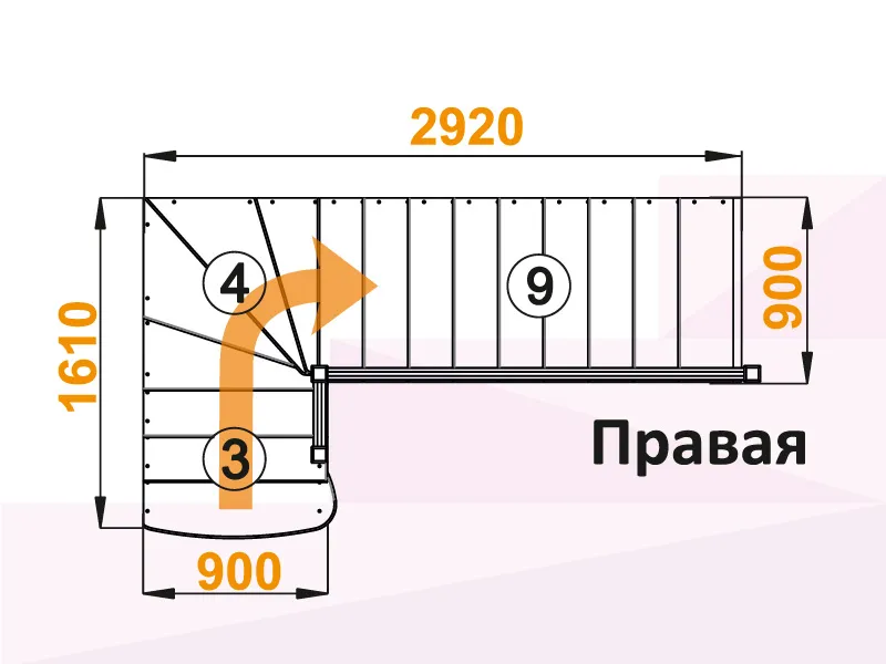 Лестница К-001М/6 с поворотом направо