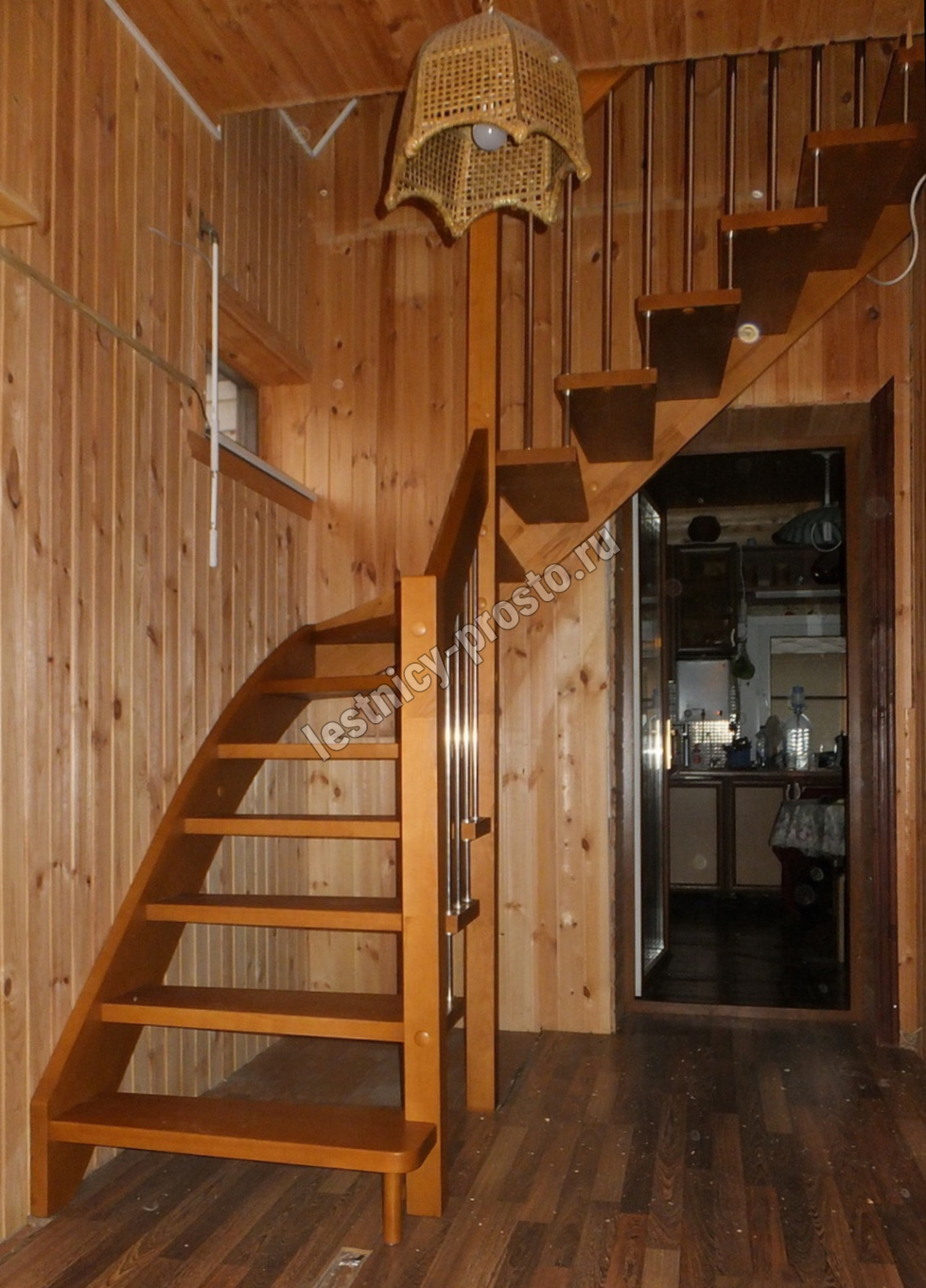 Лестница Prosto Console г-образная забежная бук, h225 см (9 ступеней)