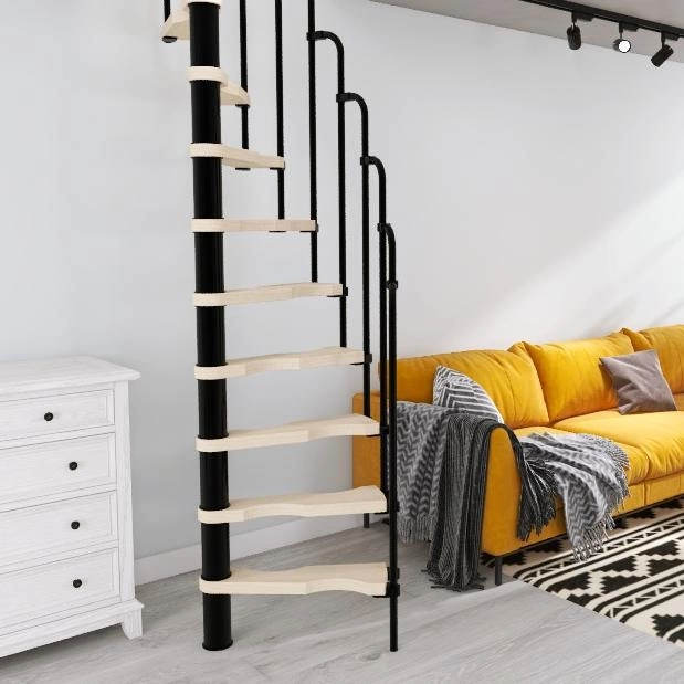 Базовый комплект включает в себя деревянные элементы лестницы и поручень без какого-либо покрытия.