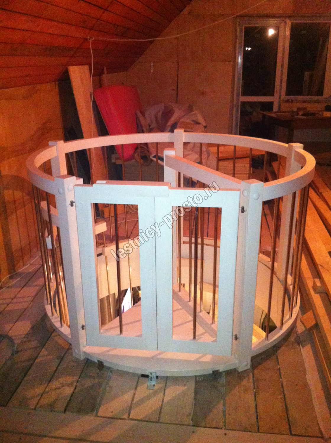 Все деревянные элементы изготовлены  из древесины «экстра» без сучков. Лестница отшлифована и подготовлена под покраску, которая не включена в стоимость.