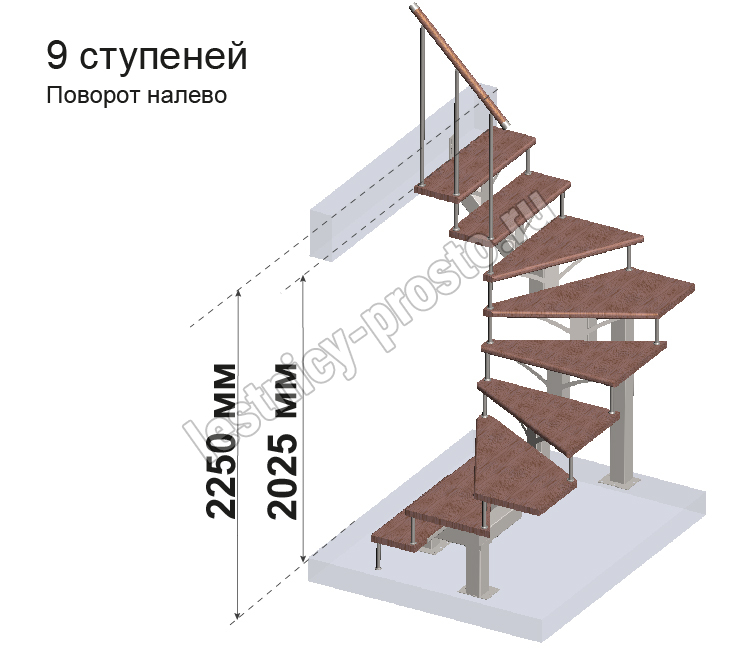 Комплект ограждений для П-образной лестницы MONO h225 из 9 ступеней.