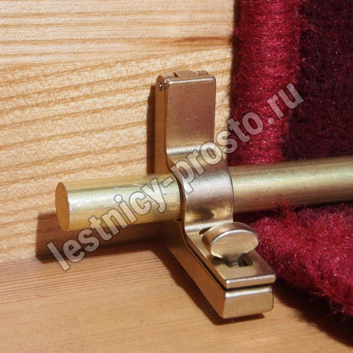 Ковродержатель комплектуется двумя держателями из латуни цвета золото, а также цельным прутком из латуни длиной от 101 до 130 см. Конструкция является сборно-разборной не требующей демонтажа креплений, что делает ее долговечной и очень удобной для чистки ковров и ковровых покрытий.