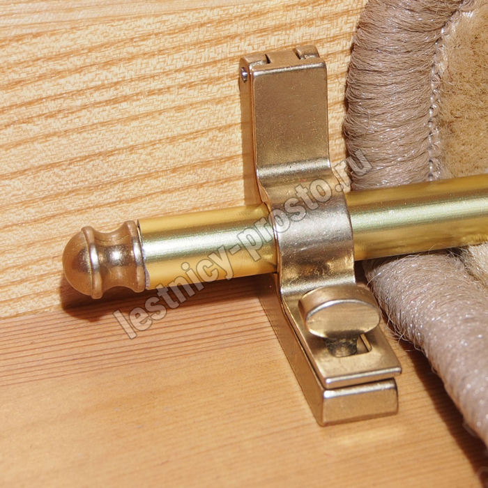 Ковродержатель комплектуется двумя держателями и двумя заглушками из латуни цвета золото, а также алюминиевой трубкой цвета золота, длиной от 101 до 130 см.