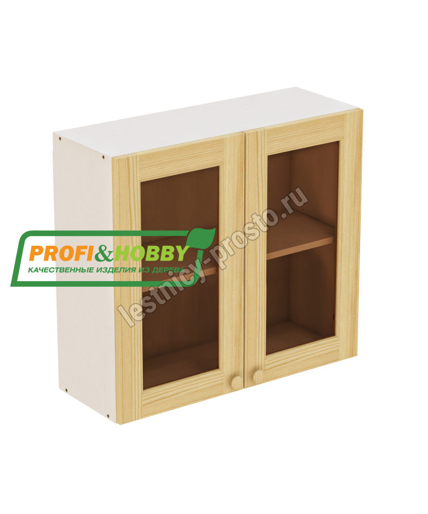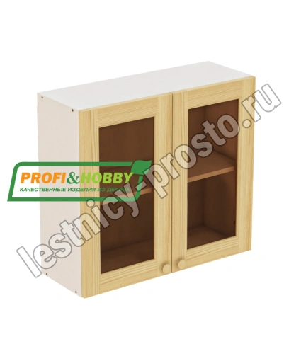 Шкаф навесной 2 двери 800х340х720 + фасад сосна под стекло бесцветный акриловый лак