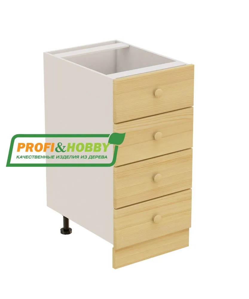 Тумба 4 ящика 400х530х720 + фасад сосна бесцветный акриловый лак