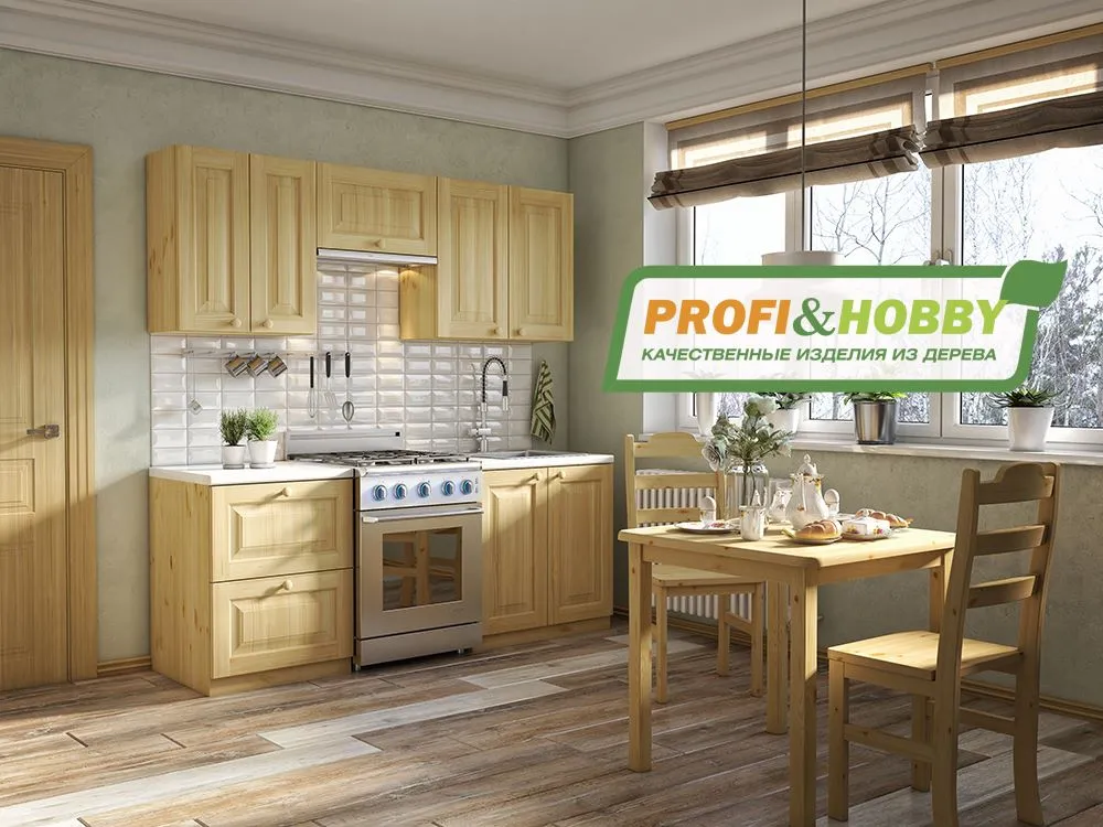 Кухня 2 х 2.32 м, массив сосны, бесцветный акриловый лак