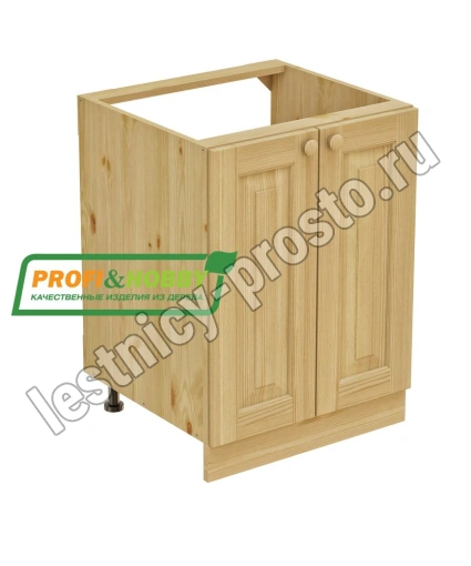 Тумба под мойку изготовлена из 100% массива дерева, без шпона и без МДФ/ДСП.