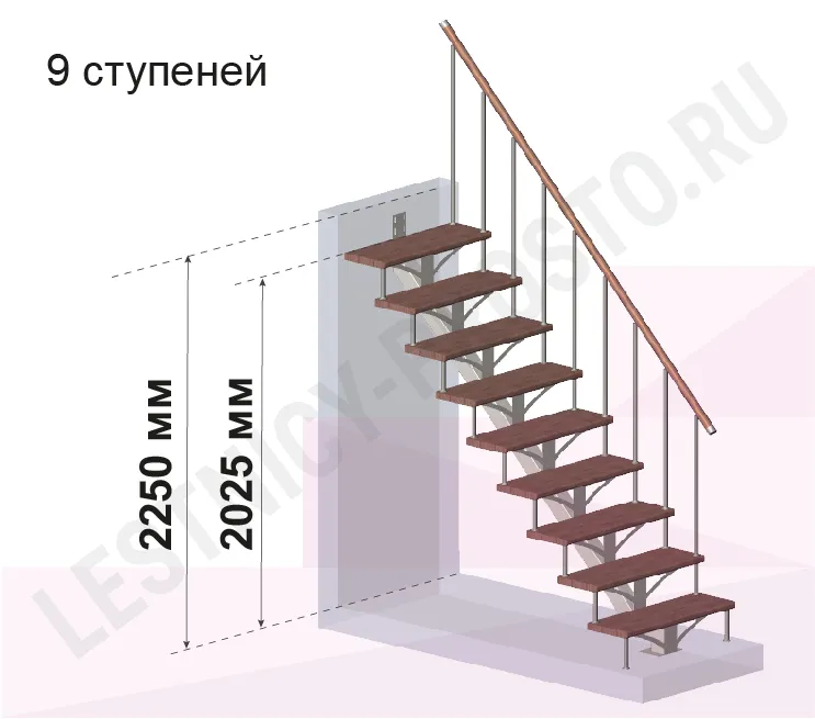 | Лестница PROSTO MONO прямая, h202.5 см, ступени хвоя |