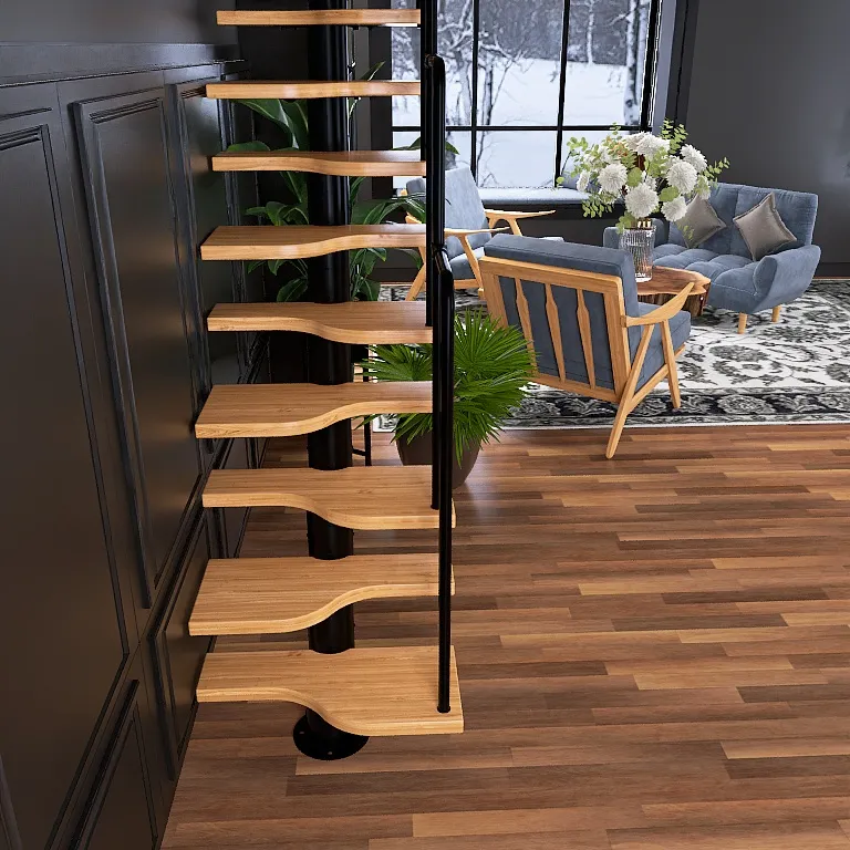 Лестница PROSTO MONO прекрасно подходит для интерьеров с минималистичным дизайном, дизайном в стиле лофт или хайтек. Основой лестницы служит цельносварной центральный косоур, который обеспечивает надёжную прочность конструкции и "парящий" дизайн, лестница с таким каркасом в интерьере смотрится легко и воздушно.