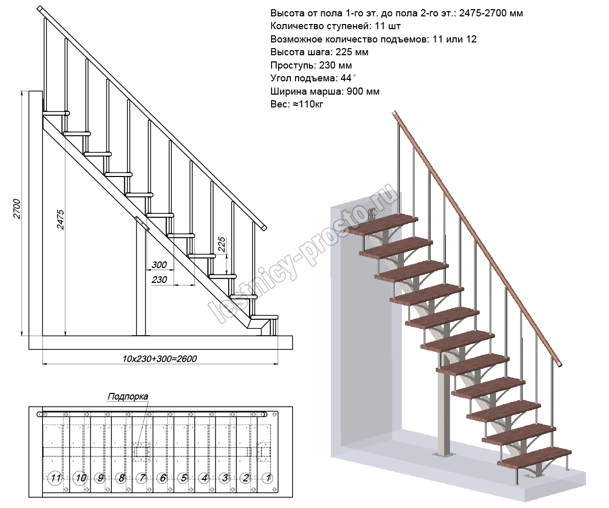 Высота лестницы 2475 - 2700 мм