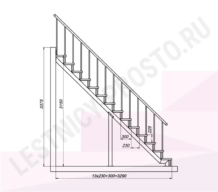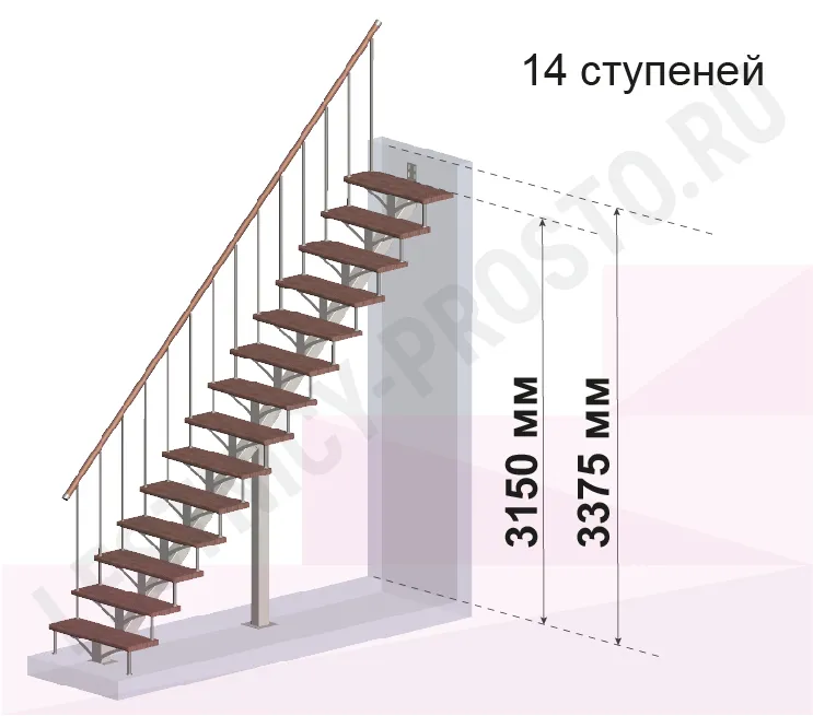 Лестница PROSTO MONO прямая, h337.5 см, ступени бук