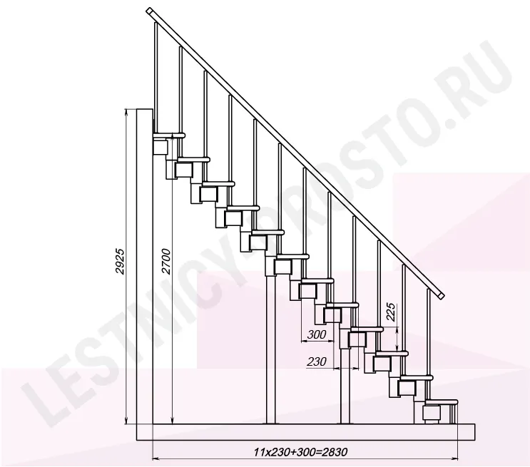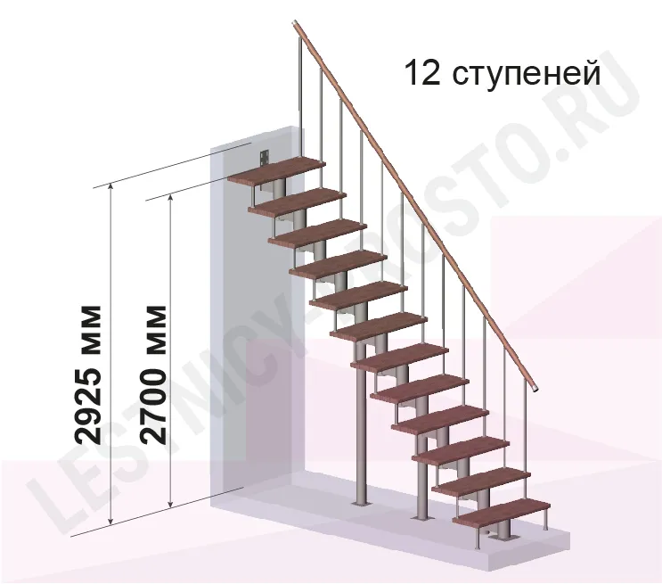Высота лестницы 2700 - 2925 (12 ступеней) мм