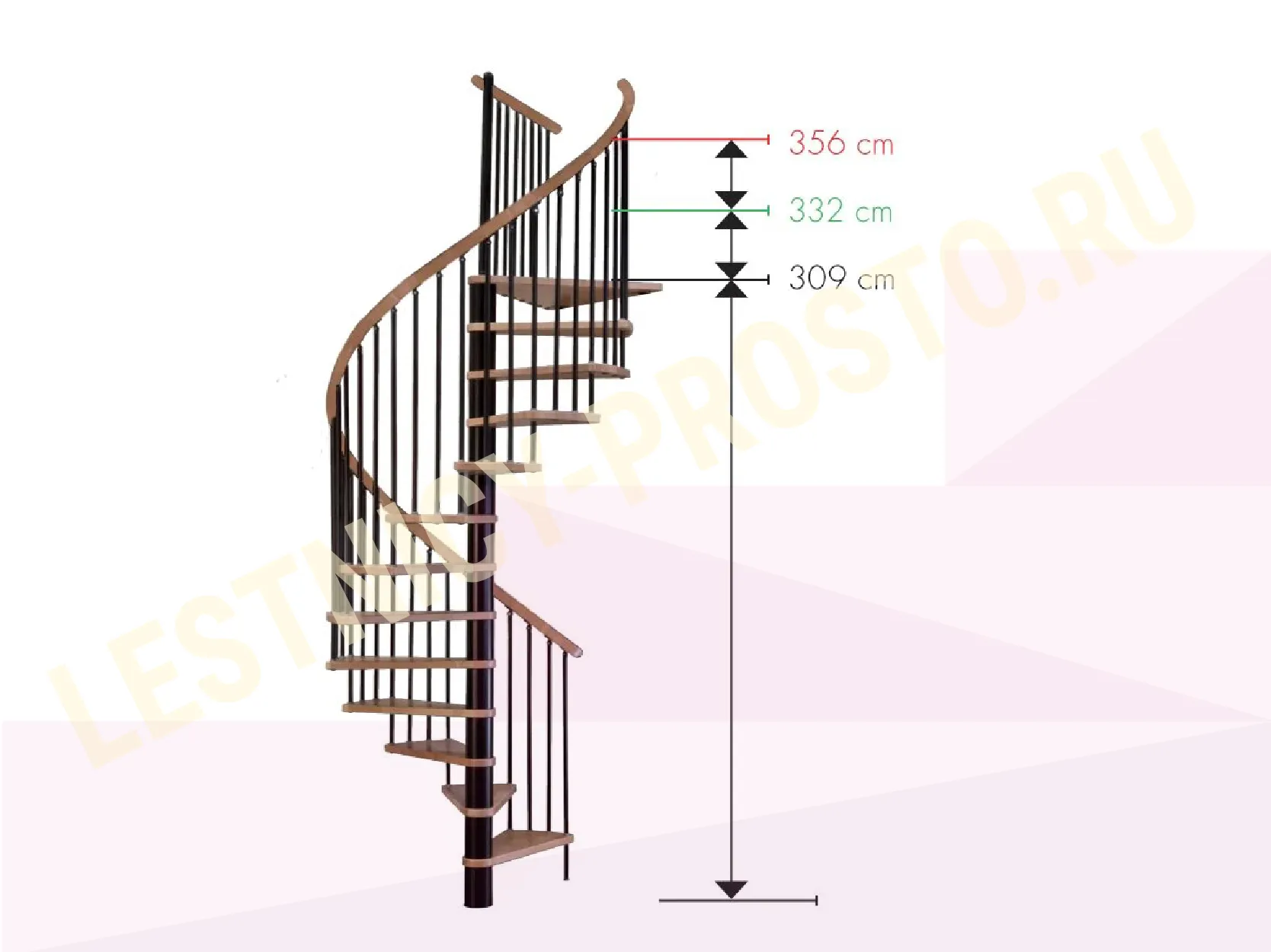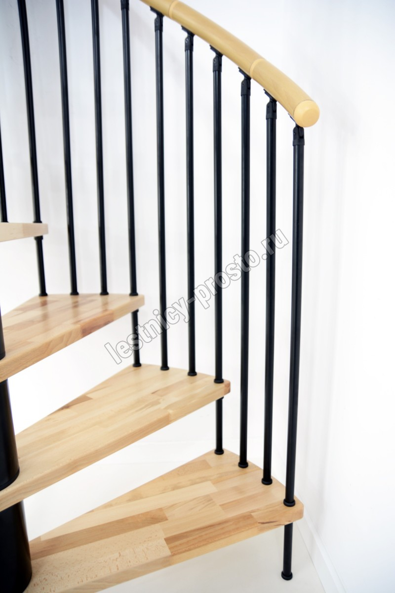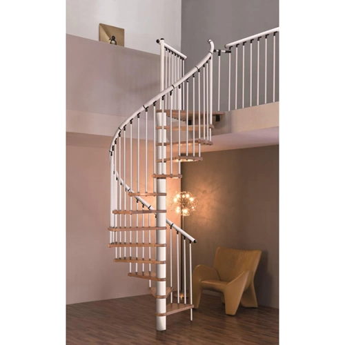 Винтовая лестница SPIRAL WOOD d120 см. белая, лакированный дуб