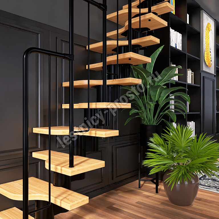 Лестница Prosto Urban Black гусиный шаг 700 мм, h234-336 см (13 ступеней), бук