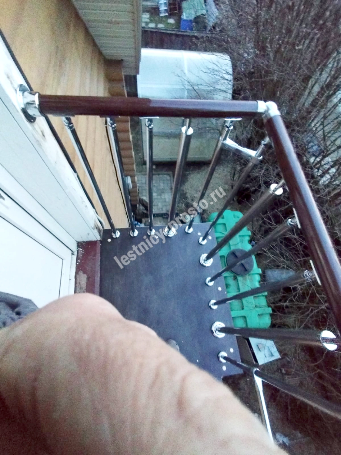 соответствует картинке, но вы не ограничены в его выборе. Лестницу можно приобрести и без ограждения, и с любым другим. Устанавливать на такую лестницу можно почти всё, начиная от классических деревянных балясин и заканчивая эксклюзивными коваными изделиями.