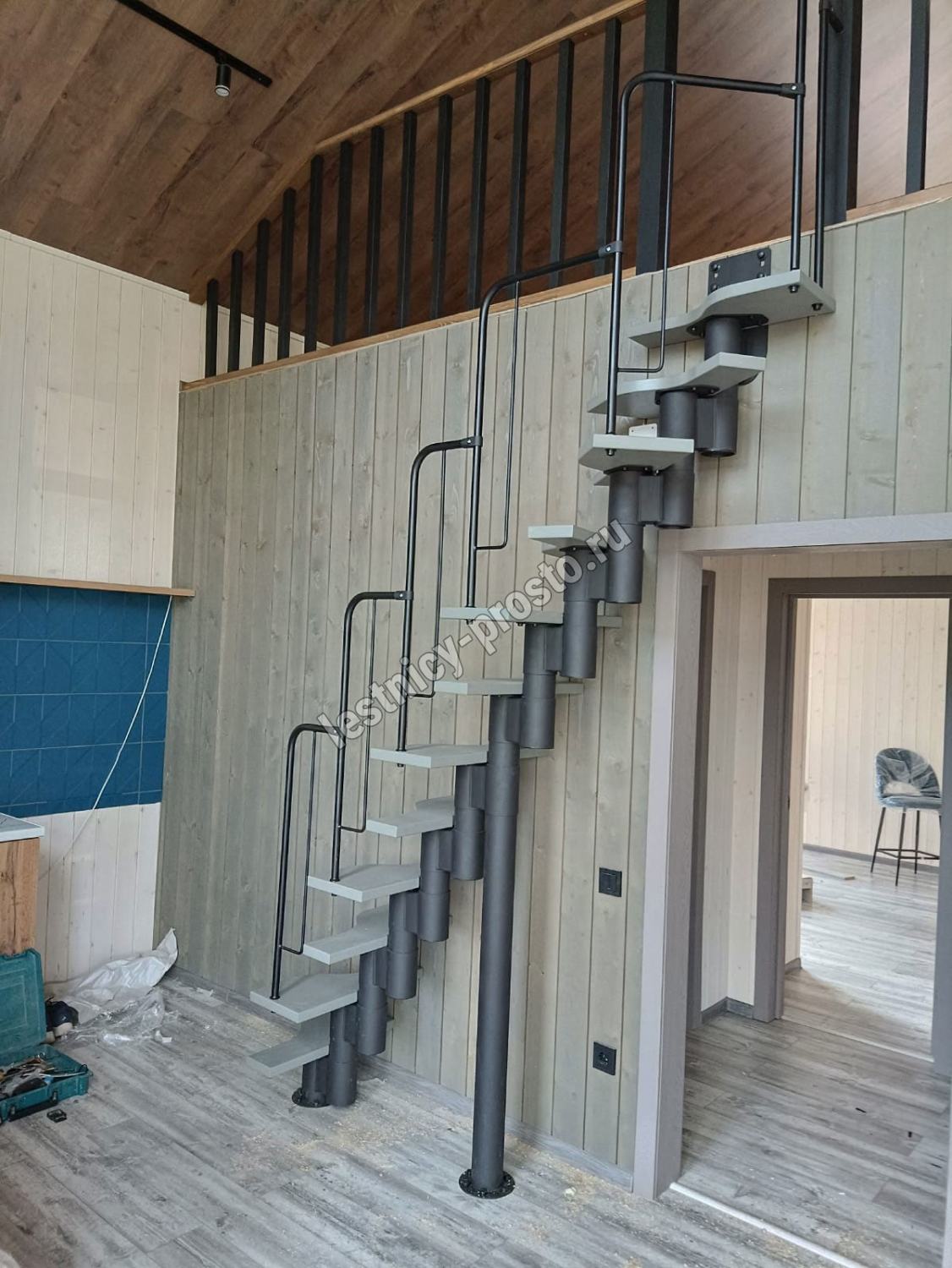 Лестница Prosto Urban Black гусиный шаг 600 мм, h198-288 см (11 ступеней), ясень
