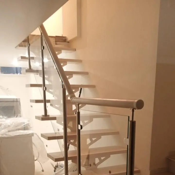 соответствует картинке, но вы не ограничены в его выборе. Лестницу можно приобрести и без ограждения, и с любым другим. Устанавливать на такую лестницу можно почти всё, начиная от классических деревянных балясин и заканчивая эксклюзивными коваными изделиями.