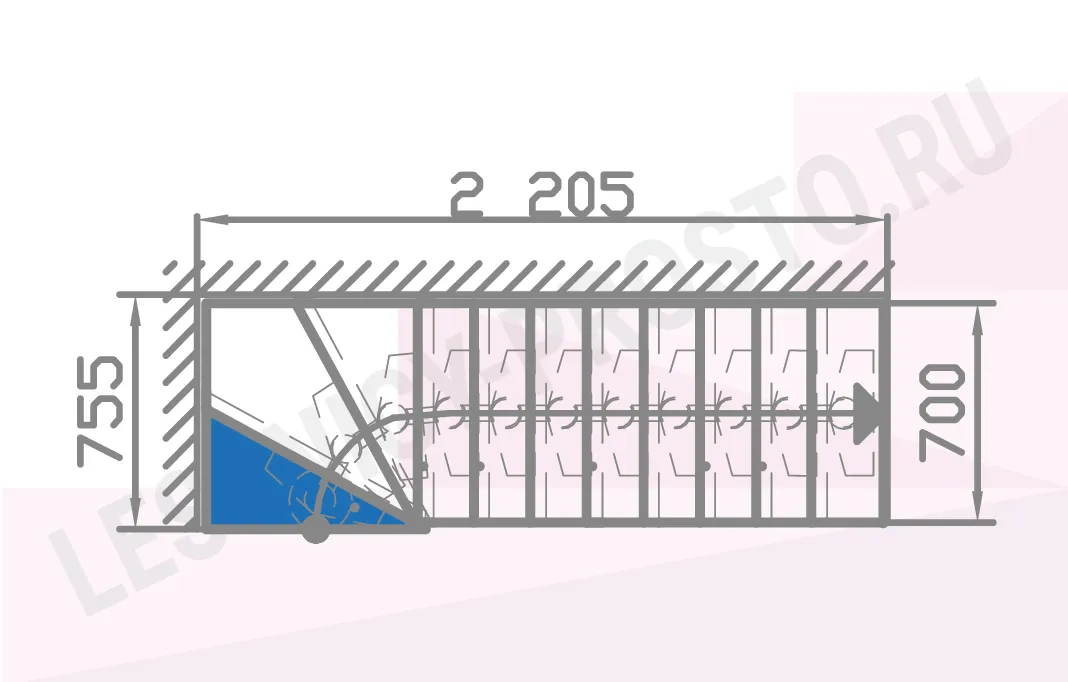 Высоту лестницы можно увеличить с помощью дополнительных секций (ступень + модуль каркаса + модуль ограждения). Установка этой лестницы требует крепления к стене.