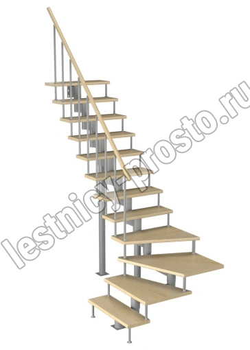Модульная лестница Фаворит 180 2160-2280, Серый, Лиственница, Нержавеющая сталь