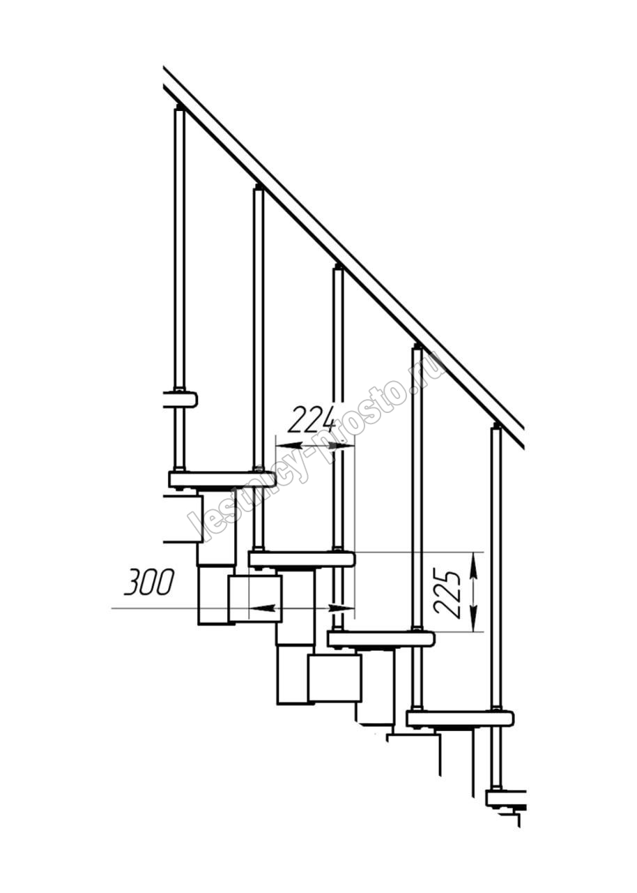 Модульная лестница Фаворит 225 2475-2585, Черный, Сосна, Крашеная
